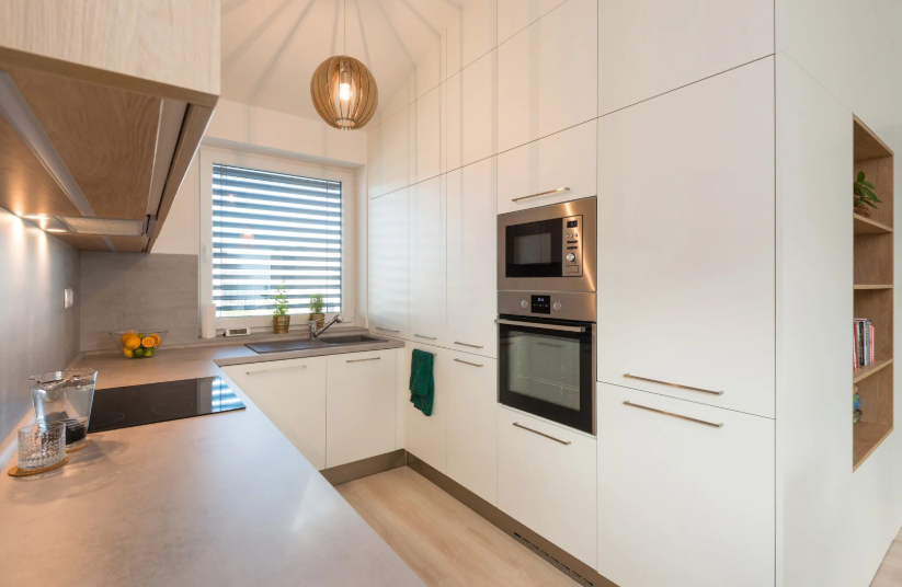 北歐風格的核心在於「光感」。在進行設計時,通常選用大面積的白色、奶白色或淺灰色作為主基調,並局部點綴原木色板材。這種色調組合不僅能提升廚房的明亮度,更能營造出溫馨的居家氛圍。 - 機能與線條的極簡化